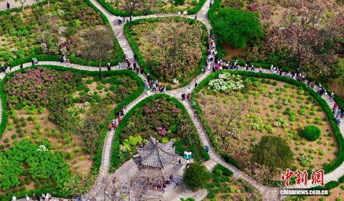 图为园区牡丹花启正衰(无人机像片)。孙猛 摄