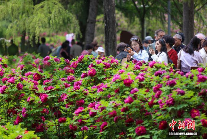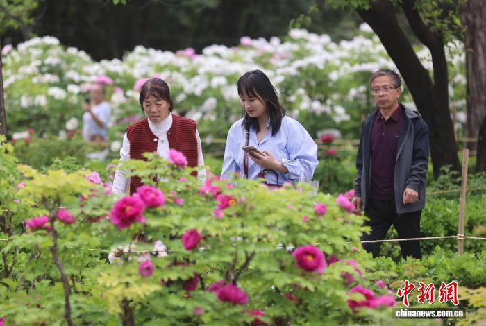 图为游人正在园区鉴赏牡丹。孙猛 摄
