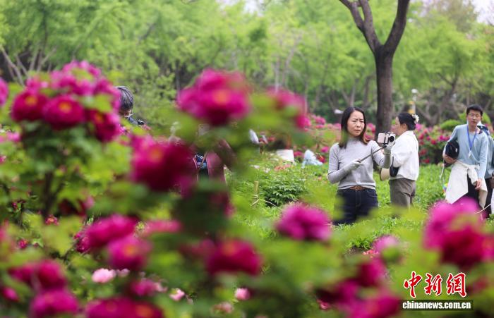 图为游人正在园区鉴赏牡丹。孙猛 摄