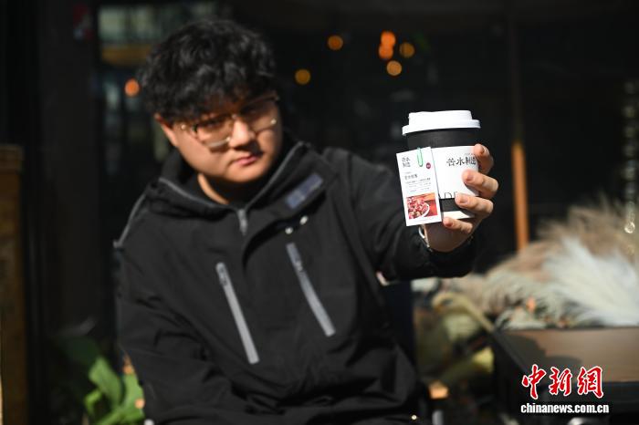 图为11月20日,李懿航显现其门店所推出的苦火玫瑰提推米苏。中新社记者 李亚龙 摄