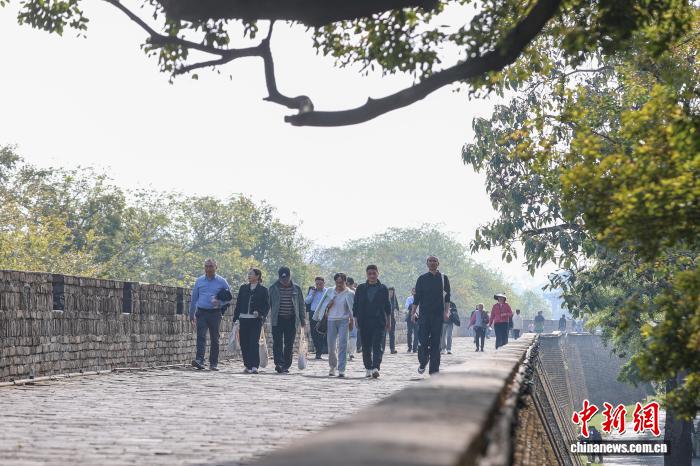 11月23日,江西赣州,公众去到宋朝古乡墙的8境台上不雅光玩耍。中新社记者 刘力鑫 摄